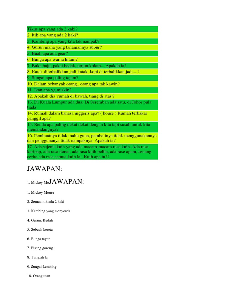Teka Teki Best Dan Jawapan. Makhluk apakah yang berkaki empat pada waktu pagi, berkaki dua pada waktu tengahari dan berkaki tiga pada waktu senja?( Omg so cute cats ♥ best funny cat videos 2021 #81. Burung aper kaki dier kat kaki, sayap dier kat kaki, paruh dier kat kaki, mata dier pun kat kaki? Pada satu hari ada seorang pencuri telah mencuri sebuah rumah semua nya sudah dia sapu….tetapi ada yg tertinggal….apakah ia? Ada juga pantun lainnya, nasehat, jenaka, dan kiasan. Anda harus berhati hati dalam menjawab jawaban tersebut… jawaban akan saya tulis pada hari jumat, 15 februari pukul 9 pagi….